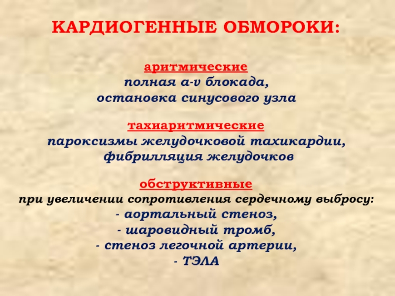 КАРДИОГЕННЫЕ ОБМОРОКИ: