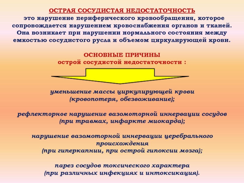 Слайд 4ОСТРАЯ СОСУДИСТАЯ НЕДОСТАТОЧНОСТЬ