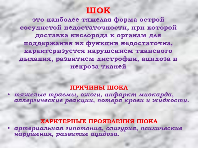 ХАРКТЕРНЫЕ ПРОЯВЛЕНИЯ ШОКА