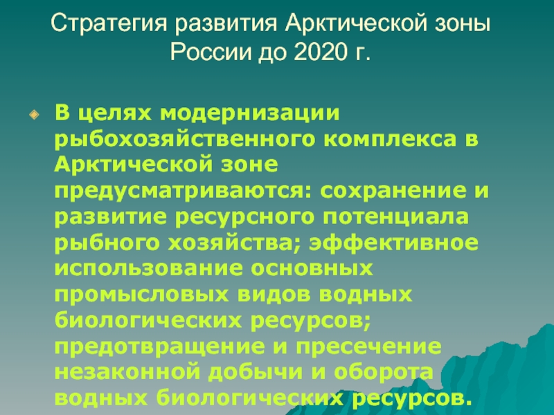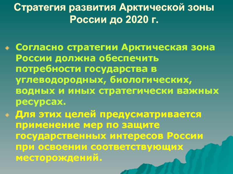 Слайд 29Стратегия развития Арктической зоны России до 2020 г.
