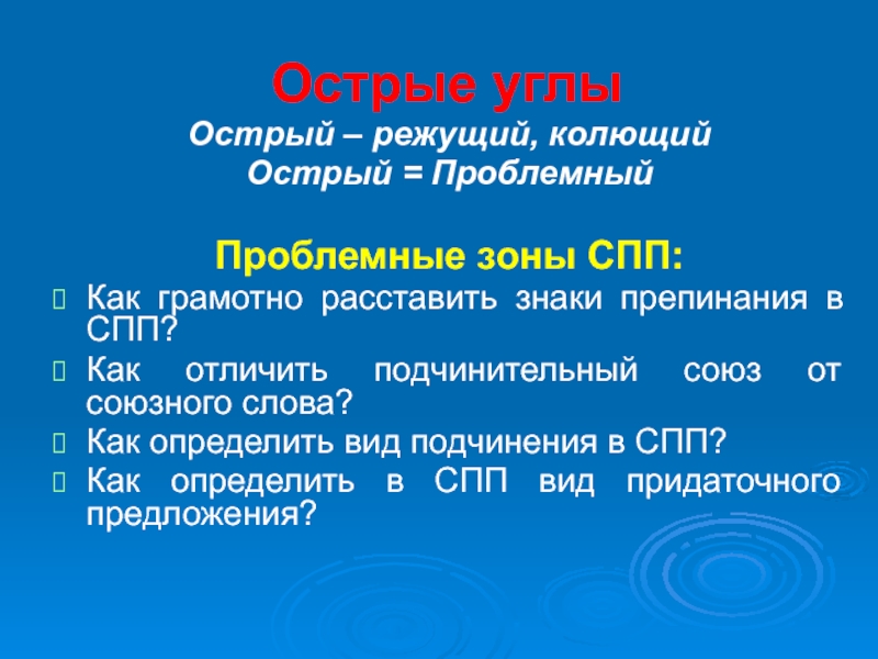 Острые углы сложноподчиненного предложения презентация