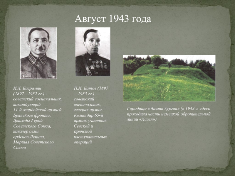 Городище «Чашин курган» (в 1943 г. здесь проходила часть немецкой обронительной линии «Хаген»)