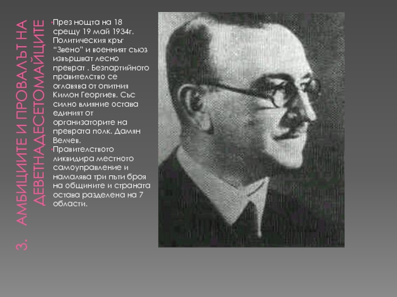 Слайд 7АМБИЦИИТЕ И ПРОВАЛЪТ НА ДЕВЕТНАДЕСЕТОМАЙЦИТЕ