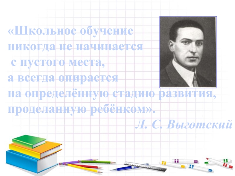 учеником, ребенок продолжает делать сегодня то, что делал вчера. Пусть новое появляется в его жизни постепенно и не ошеломляет лавиной впечатлений».