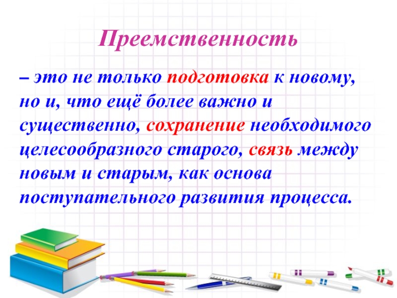 более важно и существенно, сохранение необходимого целесообразного старого, связь между новым и старым, как основа поступательного развития процесса.