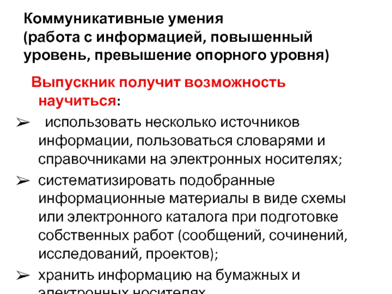 (работа с информацией, повышенный уровень, превышение опорного уровня)