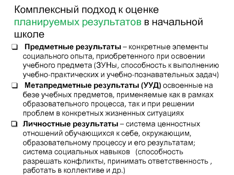 Слайд 7Комплексный подход к оценке планируемых результатов в начальной школе