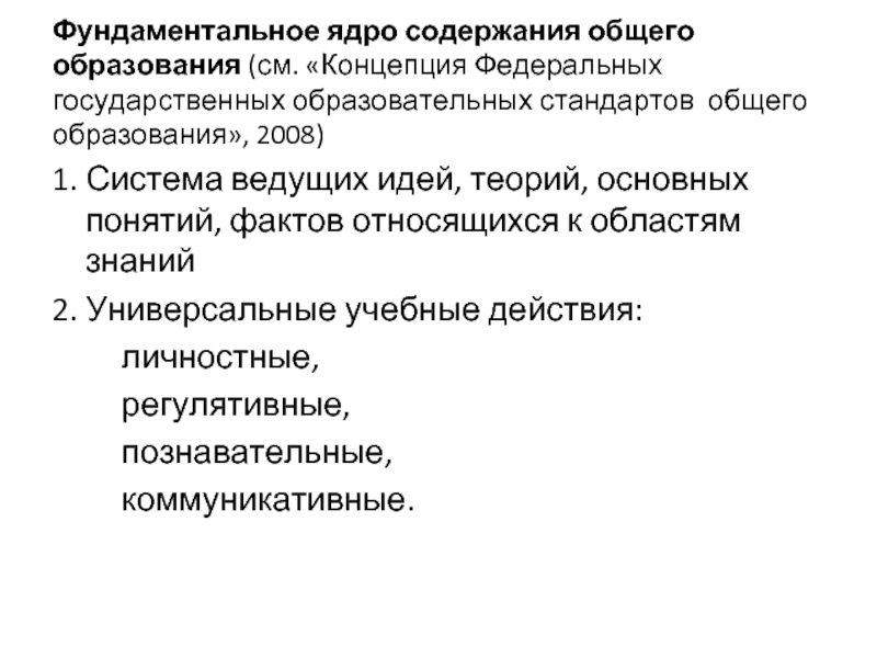 Слайд 3Фундаментальное ядро содержания общего образования (см. «Концепция Федеральных государственных образовательных стандартов