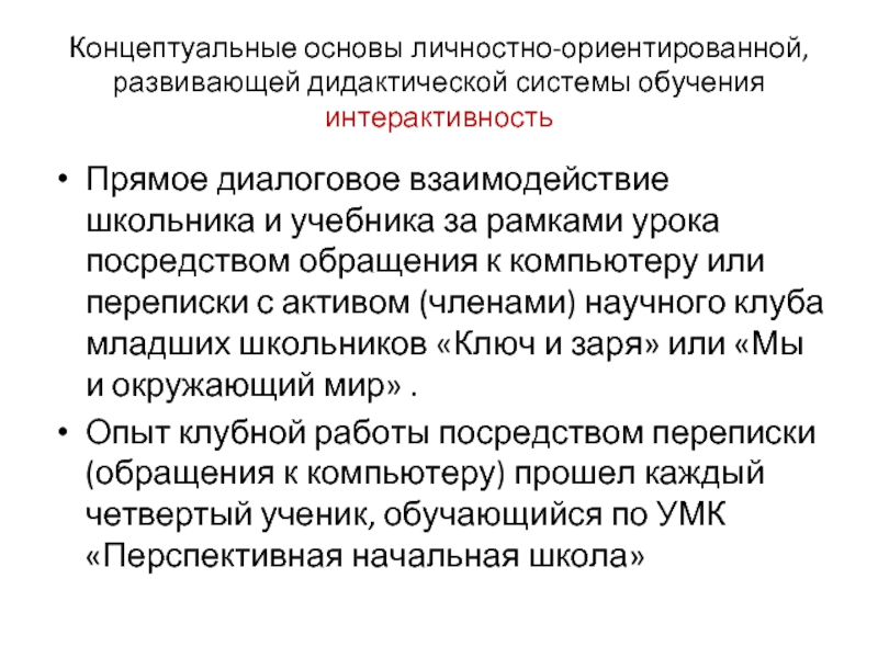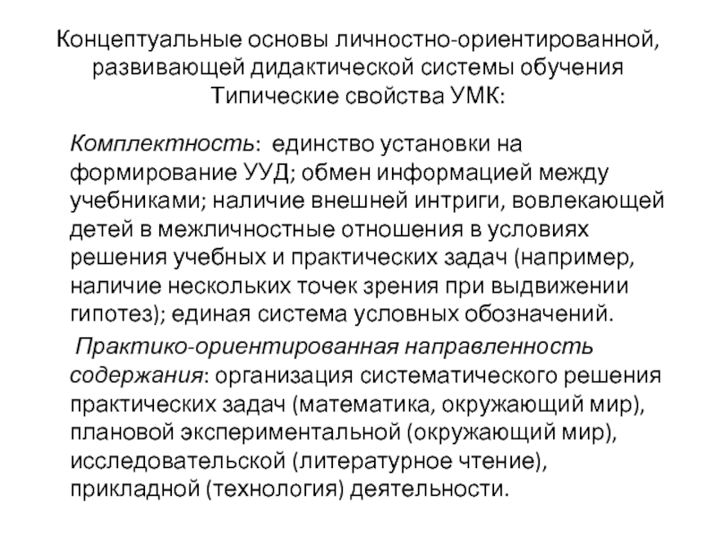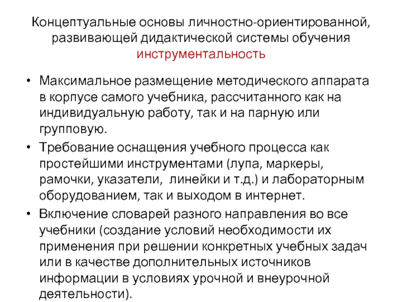 Слайд 30Концептуальные основы личностно-ориентированной, развивающей дидактической системы обучения