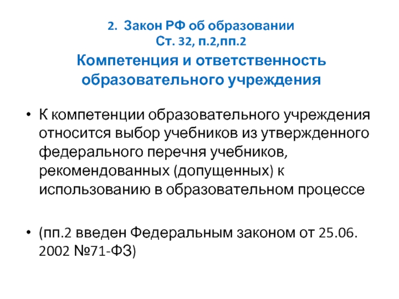 Слайд 36 2. Закон РФ об образовании