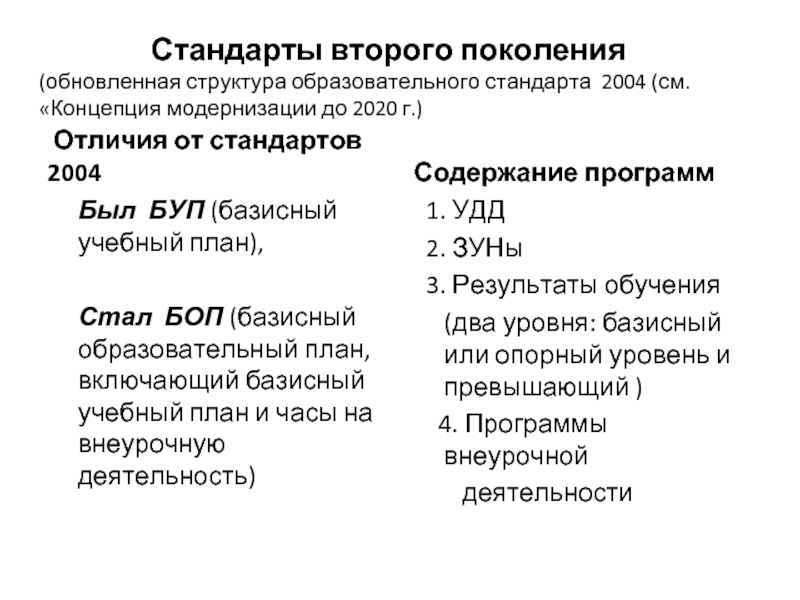 структура образовательного стандарта 2004 (см. «Концепция модернизации до 2020 г.)