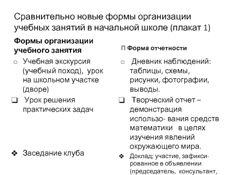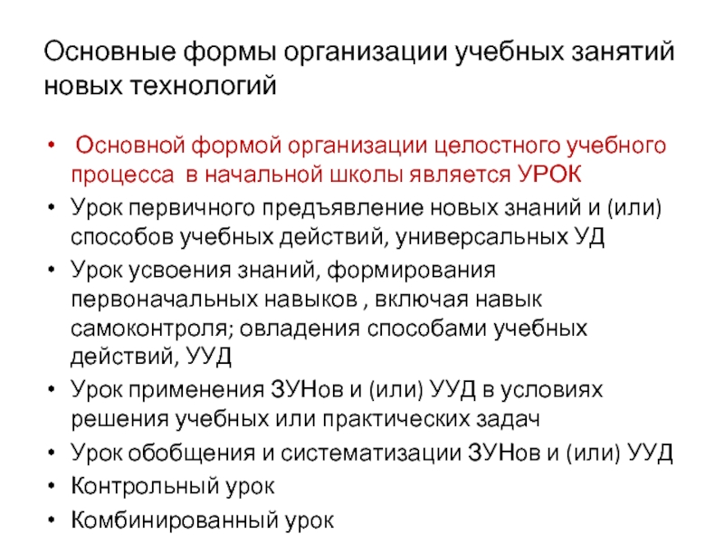 Тип урока, новые формы организации учебных занятий