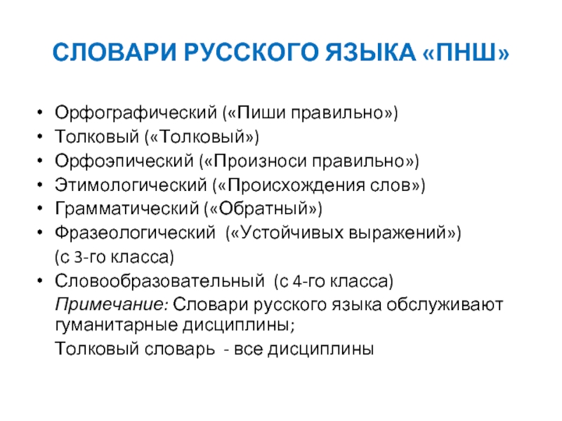 Слайд 31СЛОВАРИ РУССКОГО ЯЗЫКА «ПНШ»