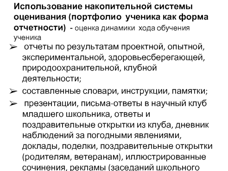 Слайд 12Использование накопительной системы оценивания (портфолио ученика как форма отчетности) - оценка