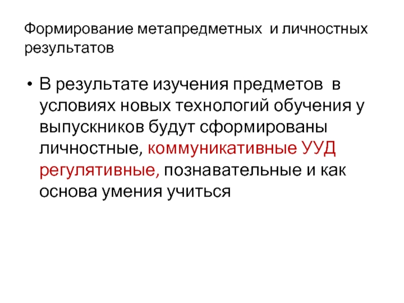 технологий обучения у выпускников будут сформированы личностные, коммуникативные УУД регулятивные, познавательные и как основа умения учиться