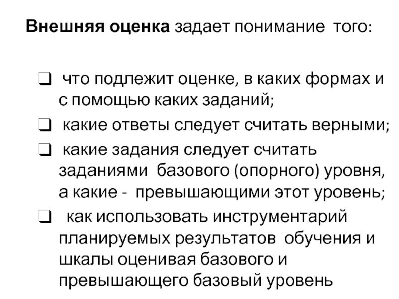 Слайд 9Внешняя оценка задает понимание того: