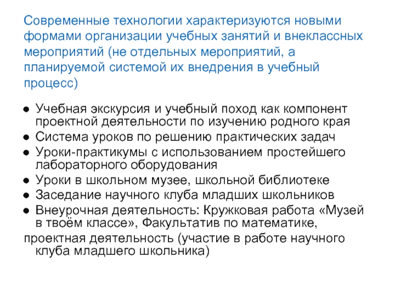Слайд 37Современные технологии характеризуются новыми формами организации учебных занятий и внеклассных мероприятий