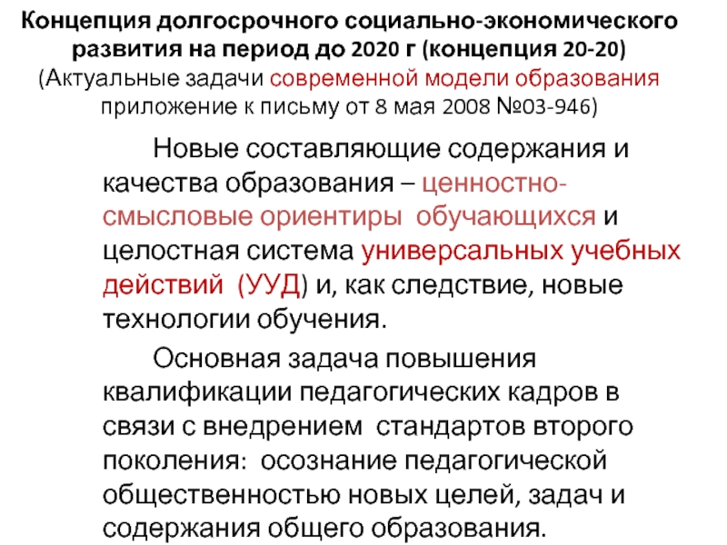 задачи современной модели образования приложение к письму от 8 мая 2008 №03-946)