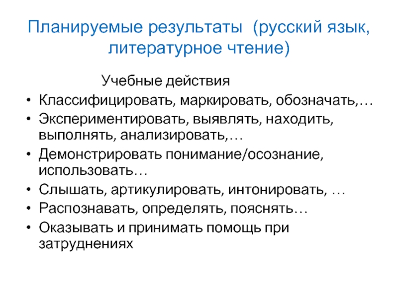 Слайд 41Планируемые результаты (русский язык, литературное чтение)