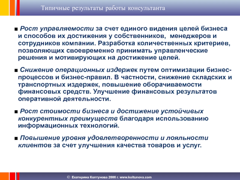 Удовлетворенность клиентов. Лояльность. Рост доли рынка и прибыли.