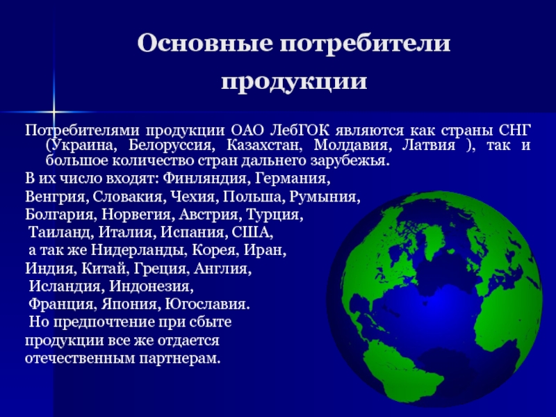 Потребителями продукции ОАО ЛебГОК являются как страны СНГ