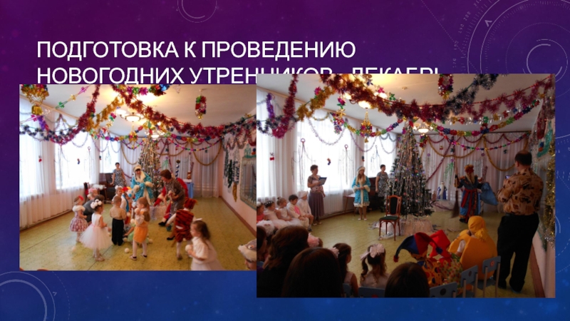 Слайд 11ПОДГОТОВКА К ПРОВЕДЕНИЮ НОВОГОДНИХ УТРЕННИКОВ - ДЕКАБРЬ