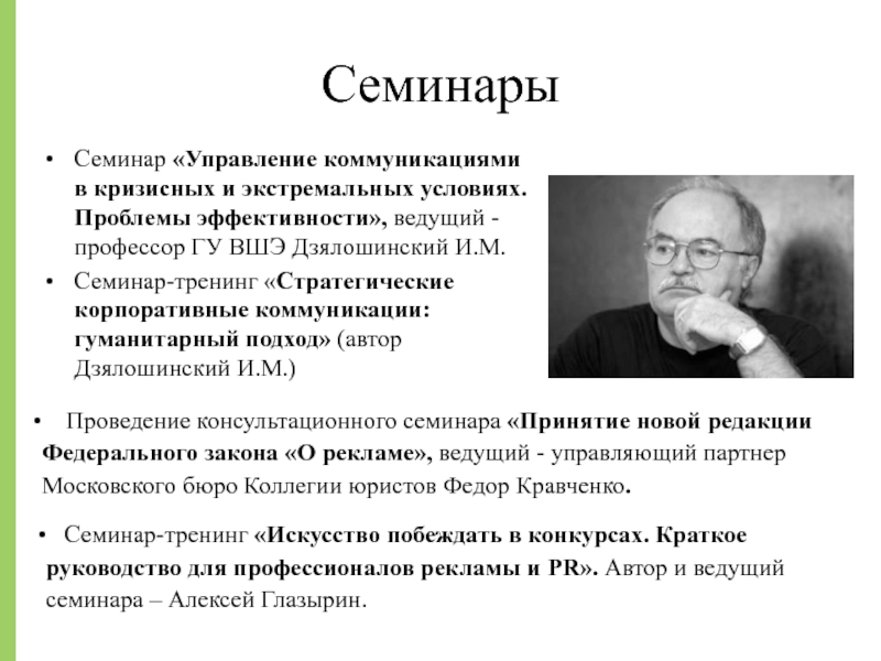 Семинар-тренинг «Искусство побеждать в конкурсах. Краткое руководство для профессионалов рекламы и PR». Автор и ведущий семинара – Алексей Глазырин.