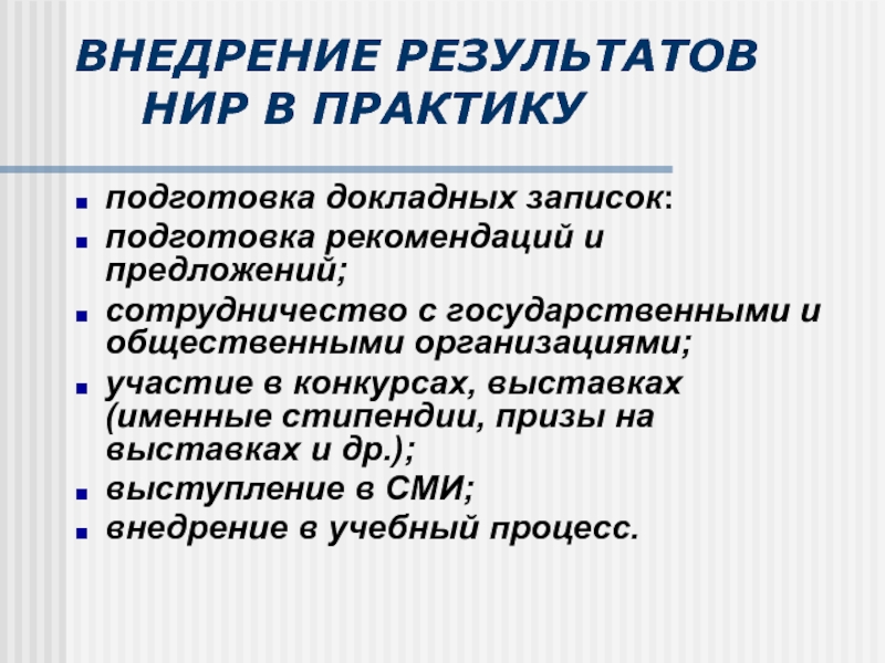 ВНЕДРЕНИЕ РЕЗУЛЬТАТОВ НИР В ПРАКТИКУ