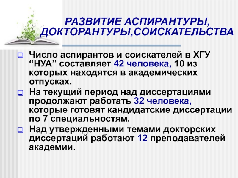 РАЗВИТИЕ АСПИРАНТУРЫ, ДОКТОРАНТУРЫ,СОИСКАТЕЛЬСТВА