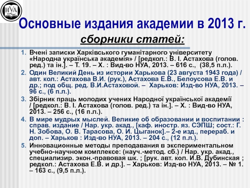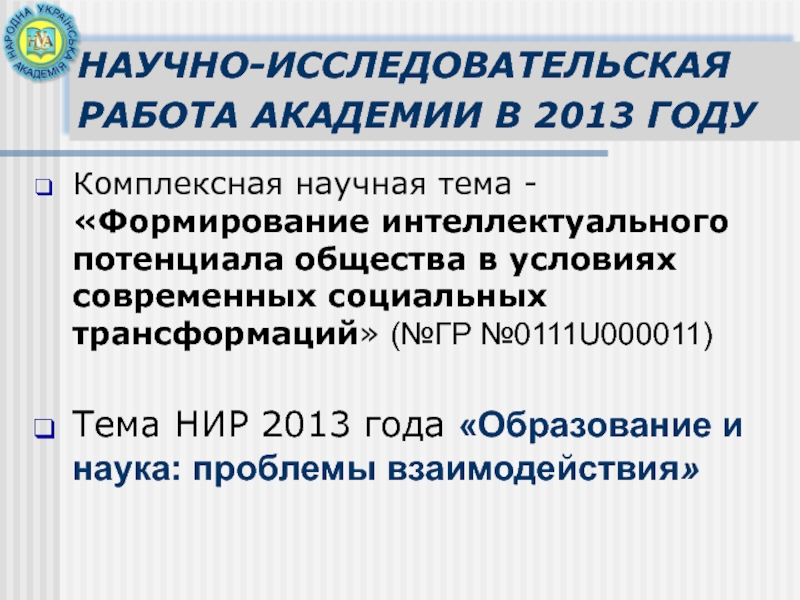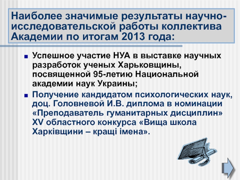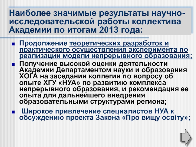 Наиболее значимые результаты научно-исследовательской работы коллектива Академии по итогам 2013 года: