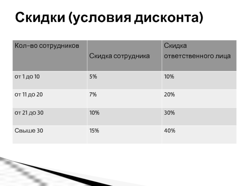Слайд 6Скидки (условия дисконта)