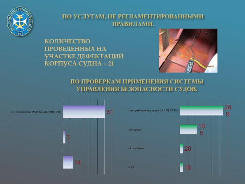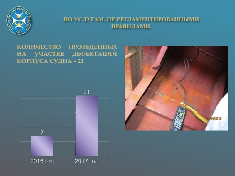 КОЛИЧЕСТВО ПРОВЕДЕННЫХ НА УЧАСТКЕ ДЕФЕКТАЦИЙ КОРПУСА СУДНА – 21