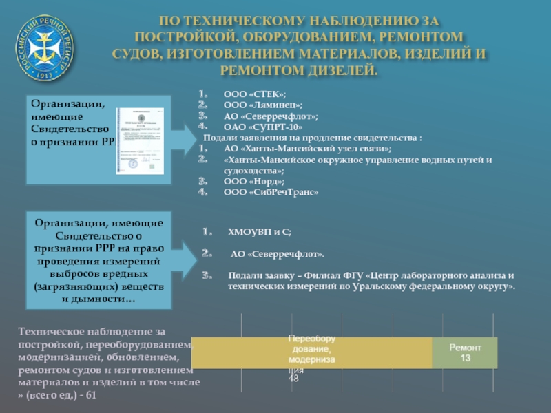 Техническое наблюдение за постройкой, переоборудованием, модернизацией, обновлением, ремонтом судов и изготовлением материалов и изделий в том числе » (всего ед.) - 61