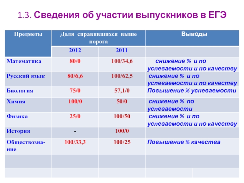 Слайд 51.3. Сведения об участии выпускников в ЕГЭ