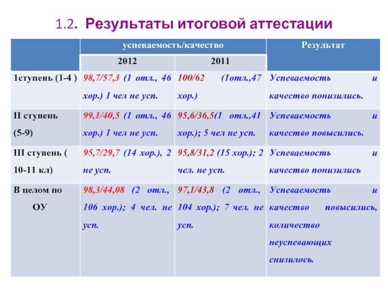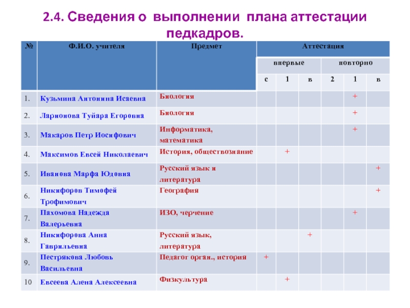 Слайд 192.4. Сведения о выполнении плана аттестации педкадров.