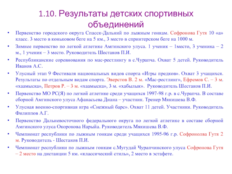 Зимнее первенство по легкой атлетике Амгинского улуса. 1 ученик – 1место, 3 ученика – 2 м., 1 ученик – 3 место. Руководитель Шестаков П.И.