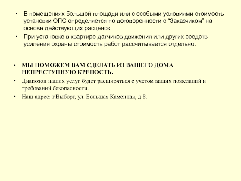 Диапозон наших услуг будет расширяться с учетом ваших пожеланий и требований безопасности.