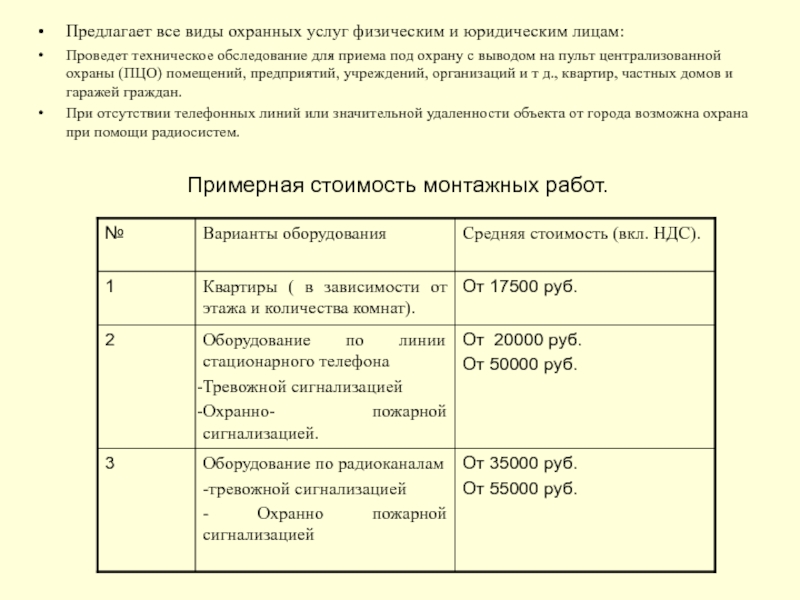 Примерная стоимость монтажных работ.