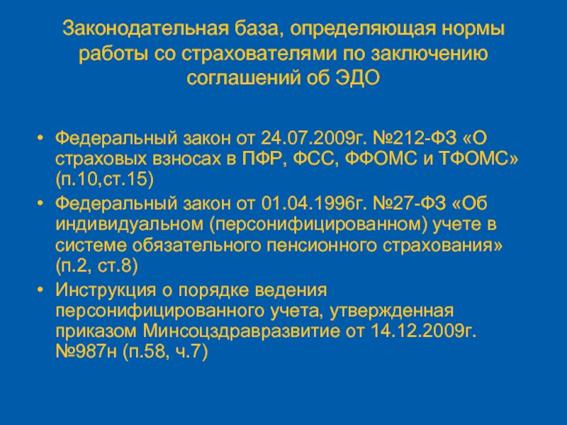 Федеральный закон от 24.07.2009г. №212-ФЗ «О страховых взносах в ПФР, Фонд социального страхования,ФФОМС и ТФОМС»