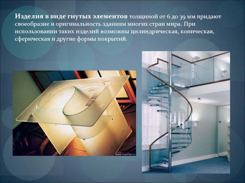 Слайд 19Изделия в виде гнутых элементов толщиной от 6 до 39 мм