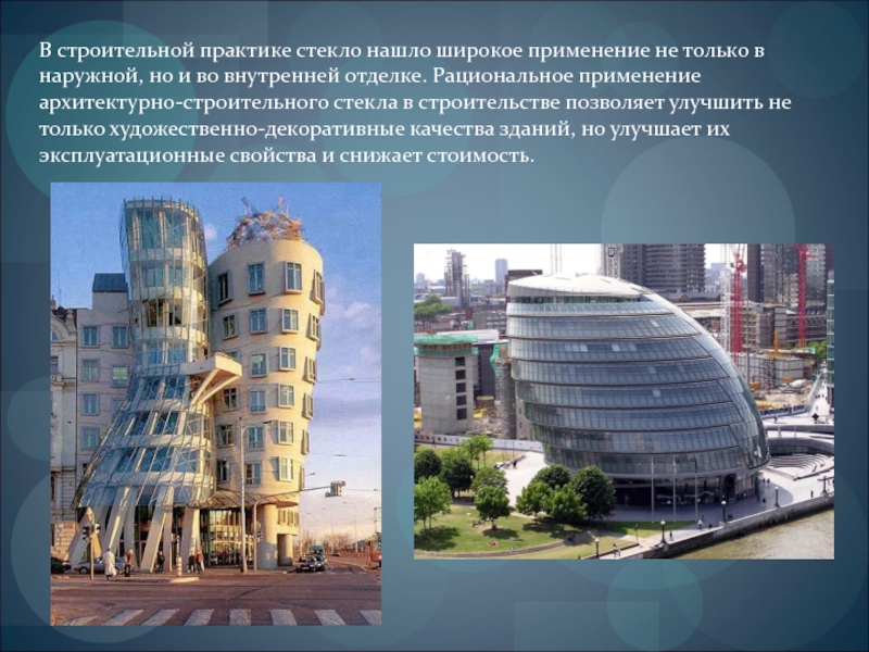 Слайд 30В строительной практике стекло нашло широкое применение не только в наружной,