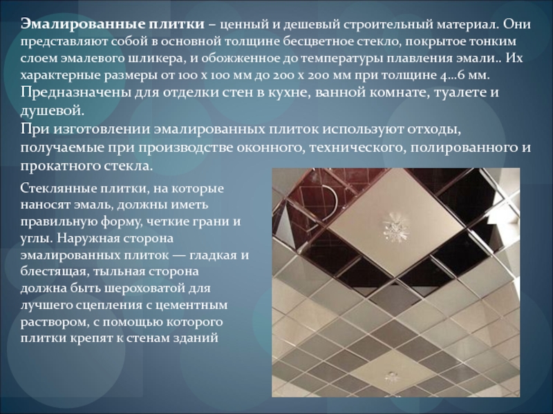 Слайд 23Эмалированные плитки – ценный и дешевый строительный материал. Они представляют собой