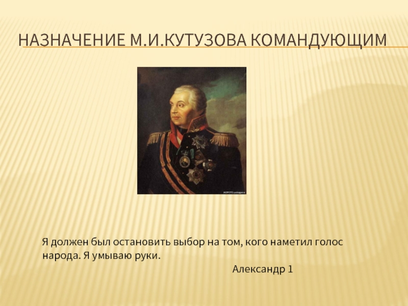 Я не начну войну, но не положу оружия, пока хоть один неприятельский солдат будет оставаться в России.
