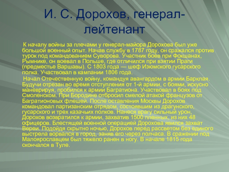 Слайд 3И. С. Дорохов, генерал-лейтенант