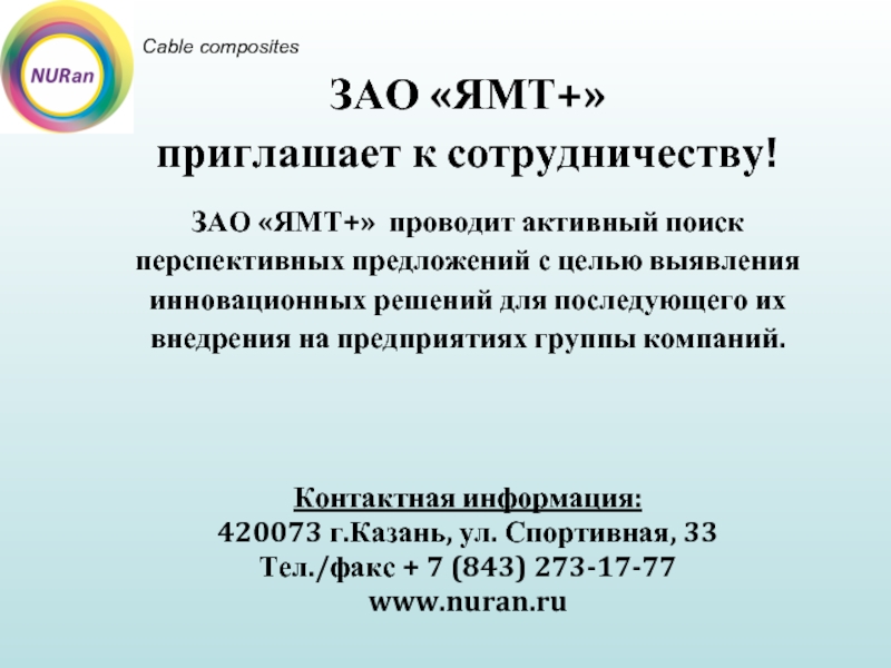 Продукция – полиолефиновые компаунды – сырье для получения оболочки, изоляции, заполнения кабеля. Виды композиций: