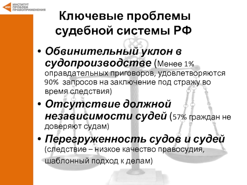 Отсутствие должной независимости судей (57% граждан не доверяют судам)