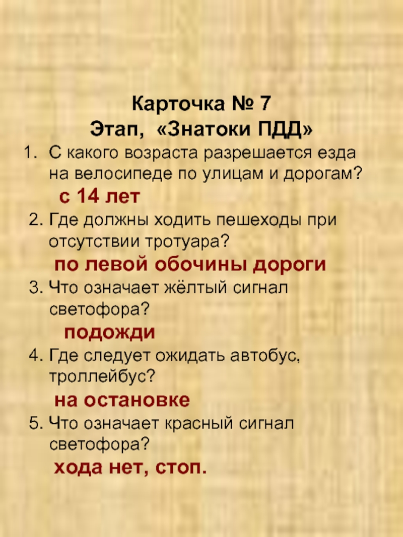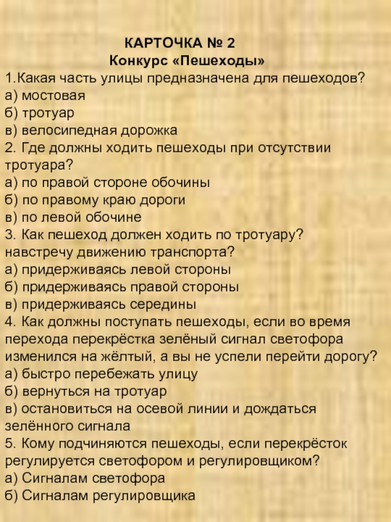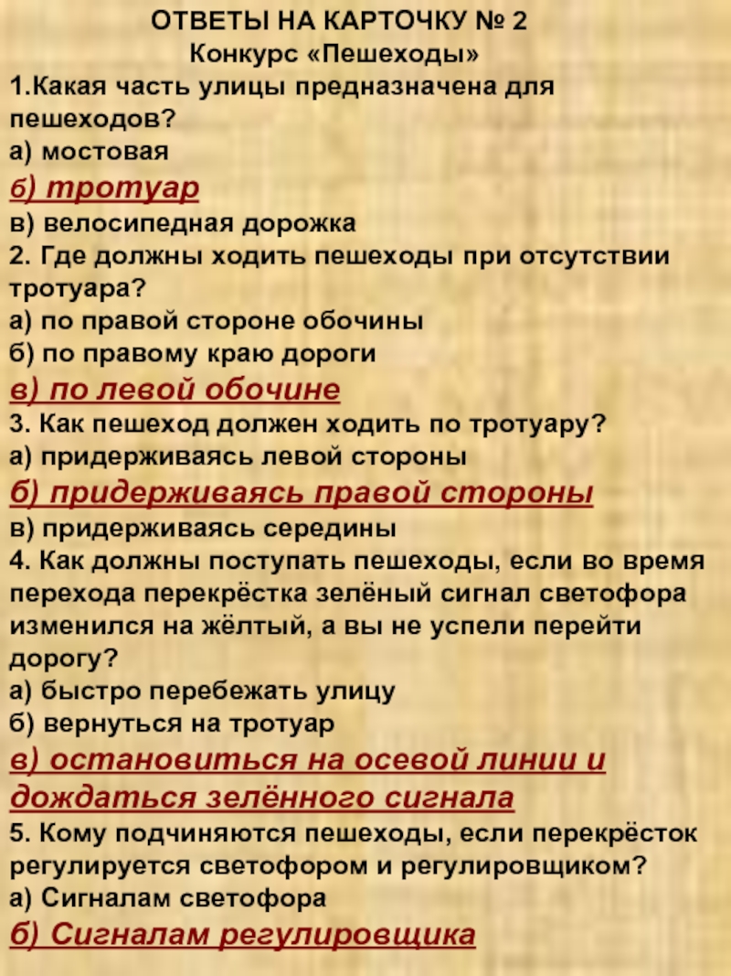 ОТВЕТЫ НА КАРТОЧКУ № 2