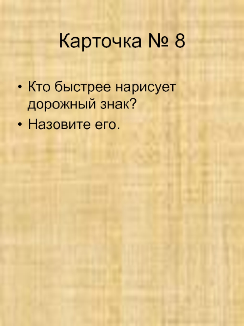 7. Этот знак запрета. «Круглый с красным ободком: две машины рядом мчатся, запрещает он …..