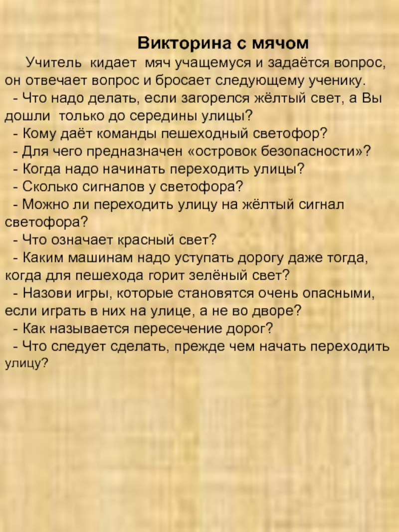 Учитель кидает мяч учащемуся и задаётся вопрос, он отвечает вопрос и бросает следующему ученику.