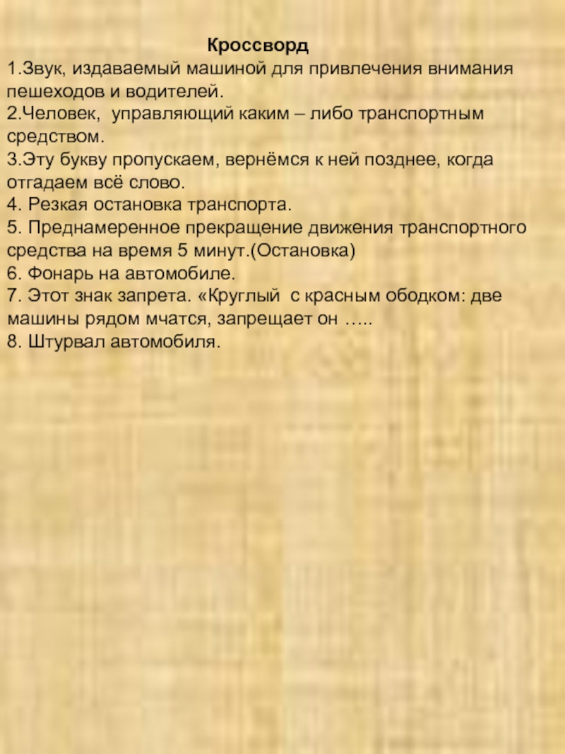 Сегодня мы будем говорить об автомобильном транспорте. Вам понадобятся Ваши знания по ОБЖ, связанные с правилами дорожного движения.